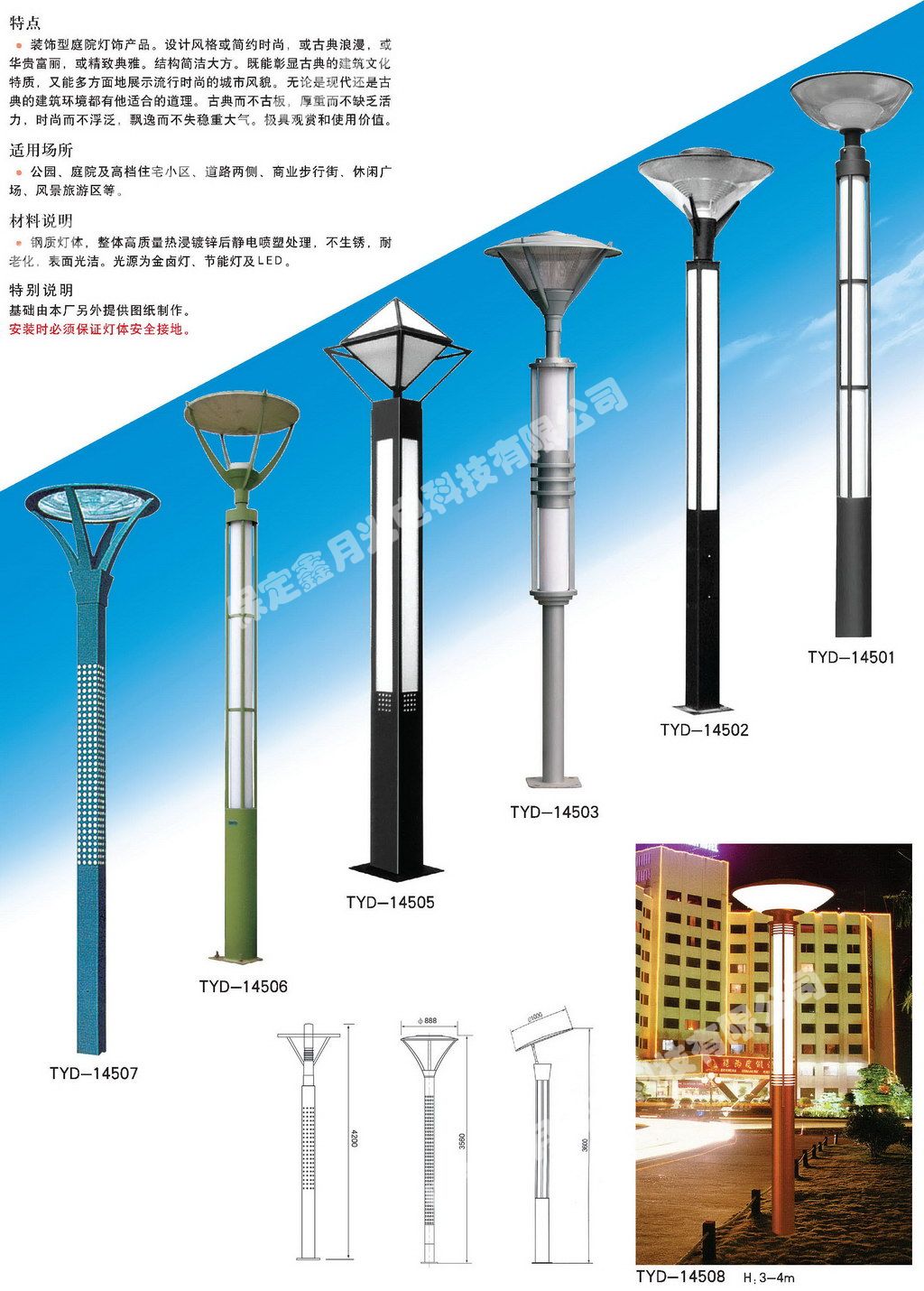 鑫月光电庭院灯图集,为您介绍我公司庭院灯产品画册